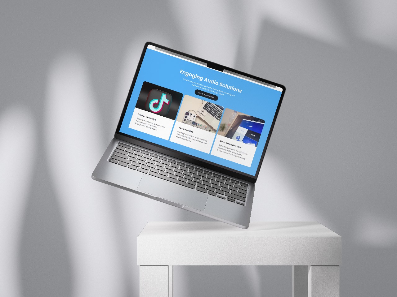 Navigation menu with links to Home, Services, Portfolio, About, and Article pages. Contact information and social media links available.
